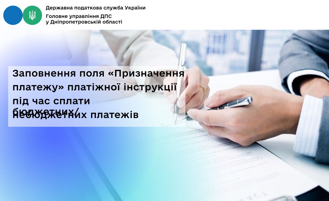 Заповнення поля «Призначення платежу» платіжної інструкції під час сплати бюджетних/небюджетних платежів