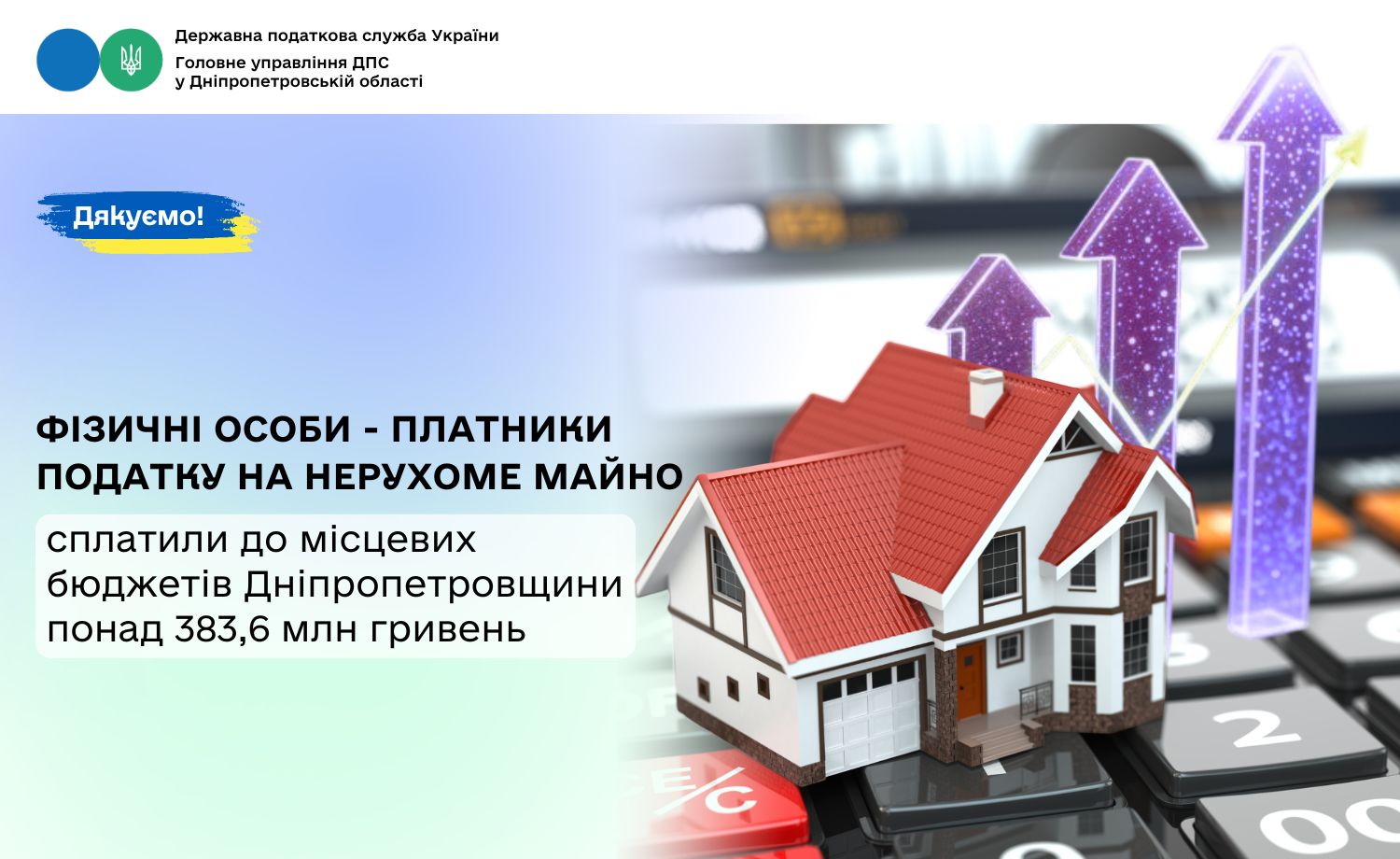 Фізичні особи – платники податку на нерухоме майно сплатили до місцевих бюджетів Дніпропетровщини понад 383,6 млн гривень