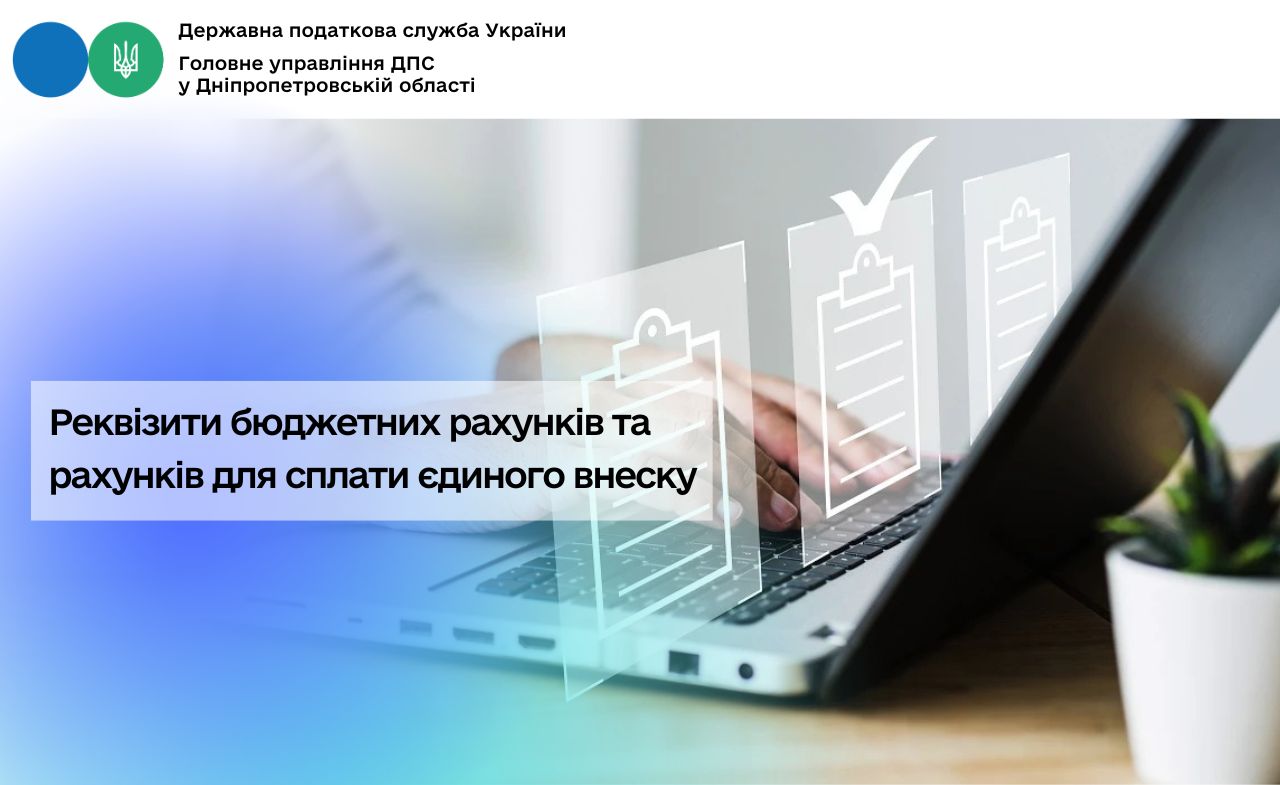 Реквізити бюджетних рахунків та рахунків для сплати єдиного внеску