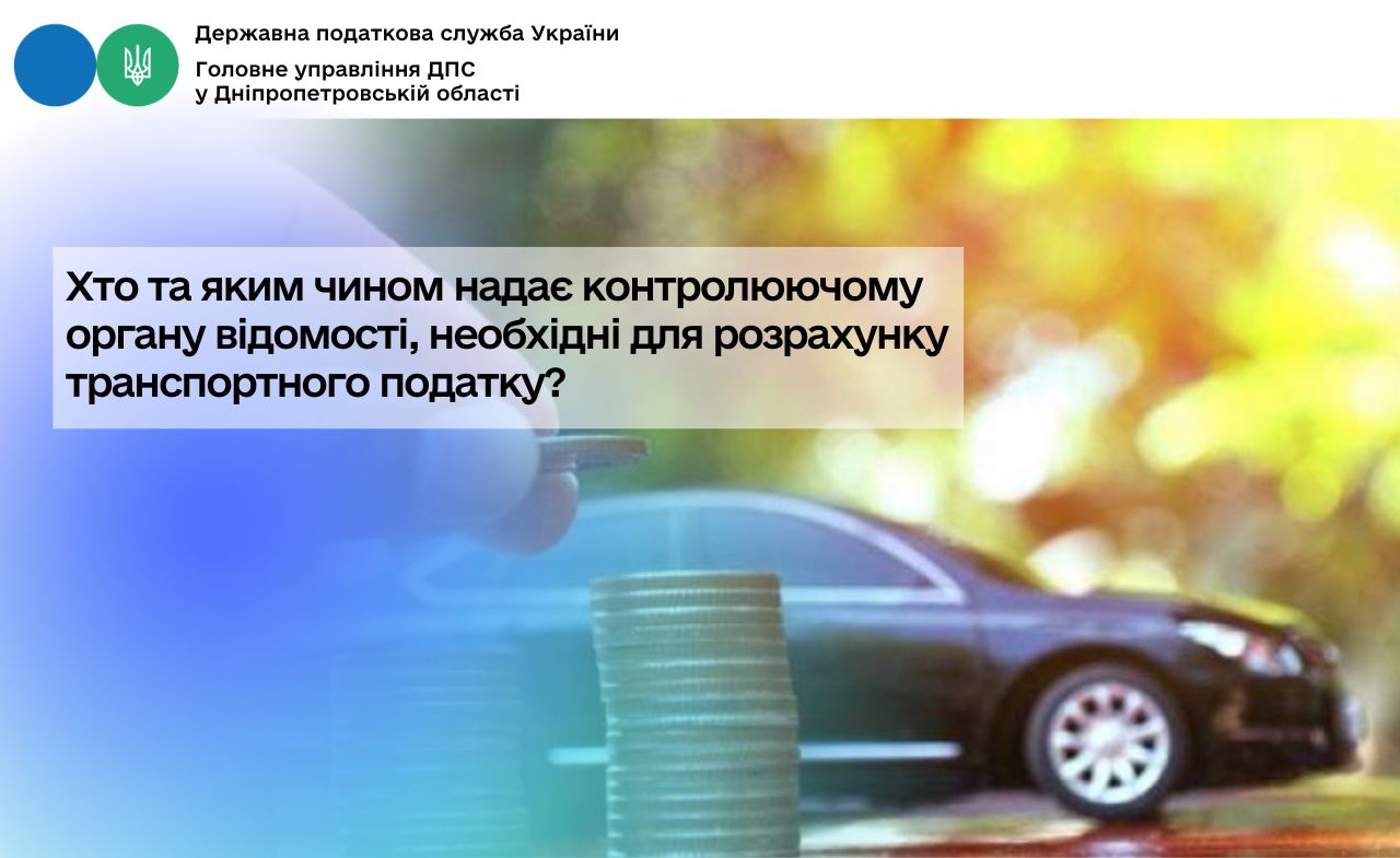 Головне управління ДПС у Дніпропетровській області нагадує, що згідно з п.п. 267.6.3 п. 267.6 ст. 267 Податкового кодексу України з 01 квітня 2015 року органи, що здійснюють державну реєстрацію транспортних засобів, зобов’язані щомісяця у десятиденний строк після закінчення календарного місяця подавати контролюючим органам відомості, необхідні для розрахунку та справляння податку фізичними та юридичними особами, за місцем реєстрації об’єкта оподаткування станом на перше число відповідного місяця.