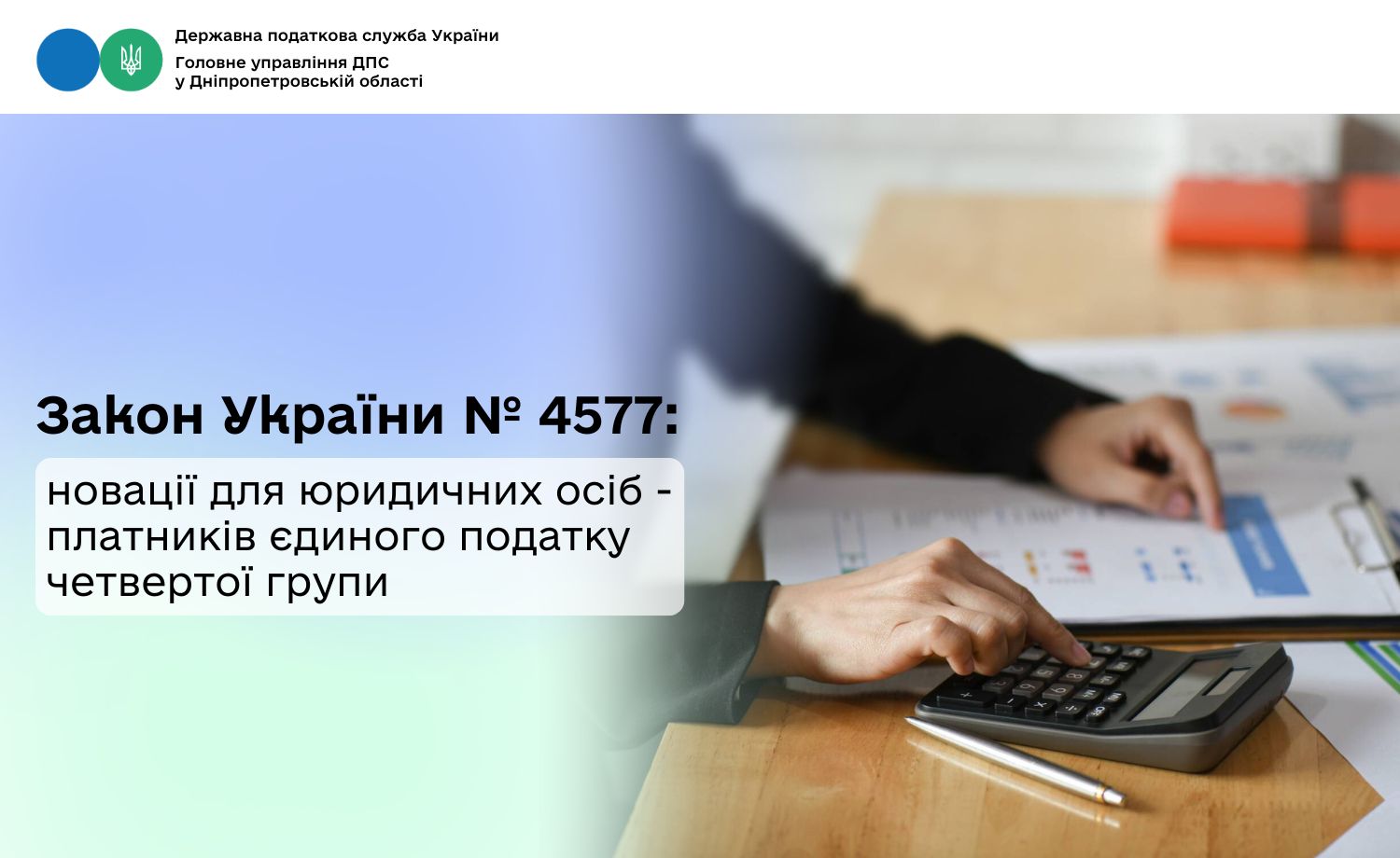 Закон України № 4577: новації для юридичних осіб – платників єдиного податку четвертої групи