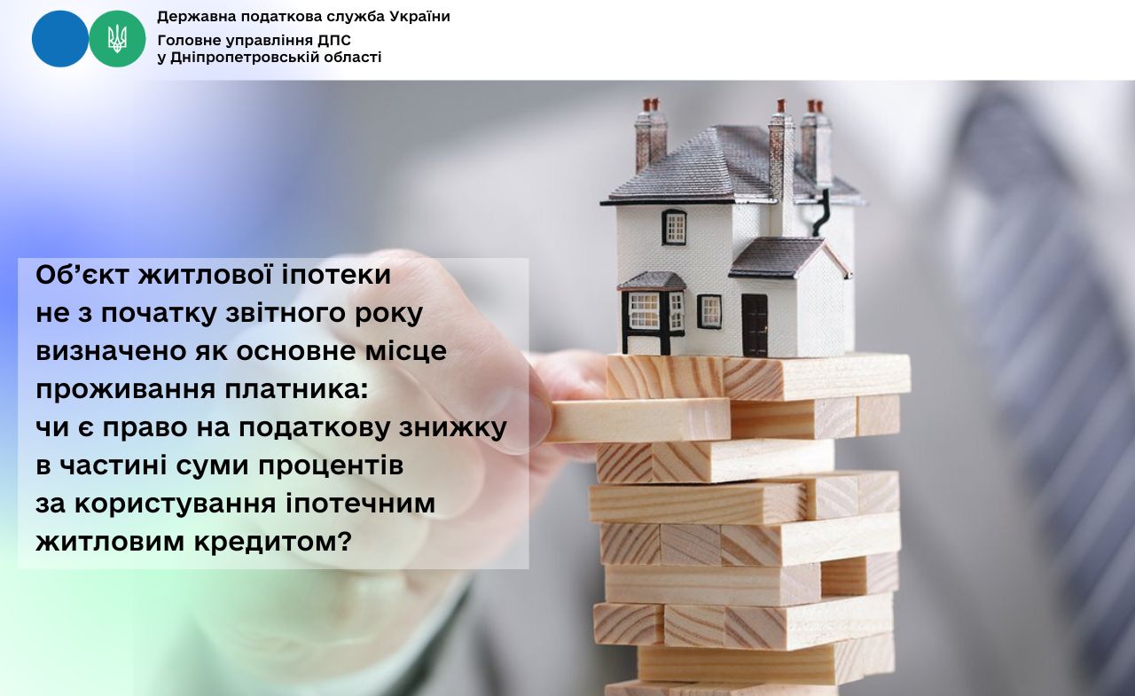 Об’єкт житлової іпотеки не з початку звітного року визначено як основне місце проживання платника: чи є право на податкову знижку в частині суми процентів за користування іпотечним житловим кредитом?