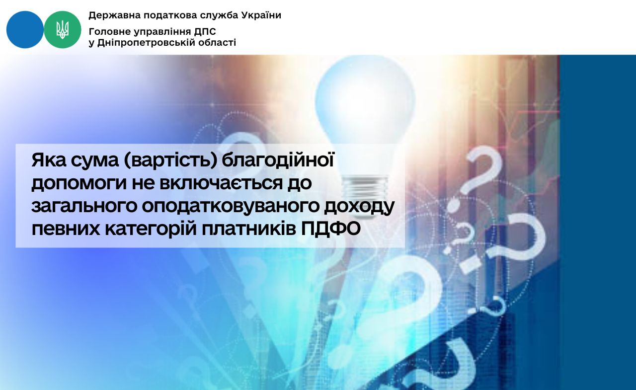 Головне управління ДПС у Дніпропетровській області звертає увагу, що не включається до оподатковуваного доходу платників податку на доходи фізичних осіб (податок, ПДФО) благодійна допомога, що надається згідно з підпунктом 165.1.54 пункту 165.1 статті 165 Податкового кодексу України (далі – Кодекс):