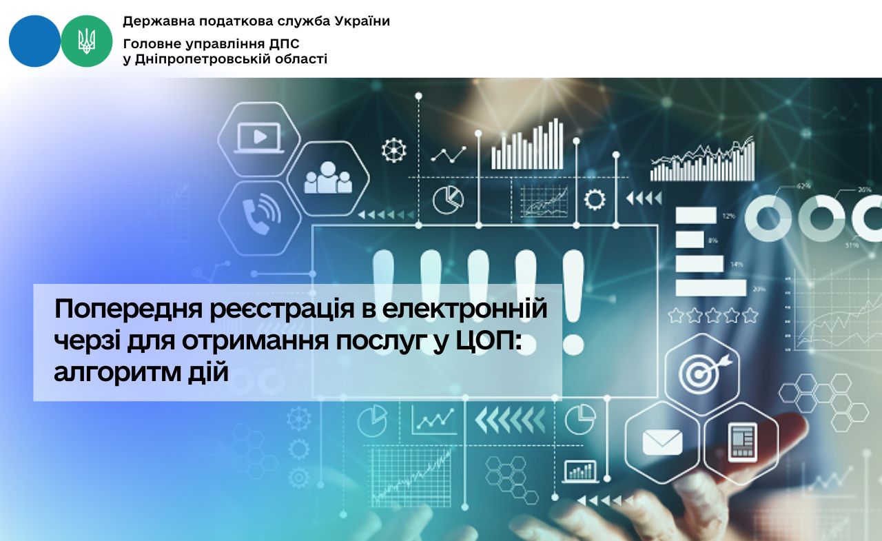 Головне управління ДПС у Дніпропетровській області нагадує, що платники мають можливість здійснити попередній запис на візит до ЦОП через вебпортал ДПС (електронна черга – сервіс попереднього запису до ЦОП для отримання адміністративних та інформаційних послуг).