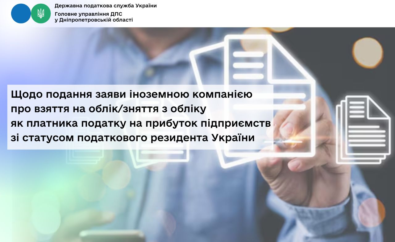 Головне управління ДПС у Дніпропетровській області звертає увагу, що порядок взяття на облік та зняття з обліку іноземної компанії як платника податку на прибуток підприємств зі статусом податкового резидента України затверджено наказом Міністерства фінансів України від 13.12.2021 № 663 (далі – Порядок № 663).