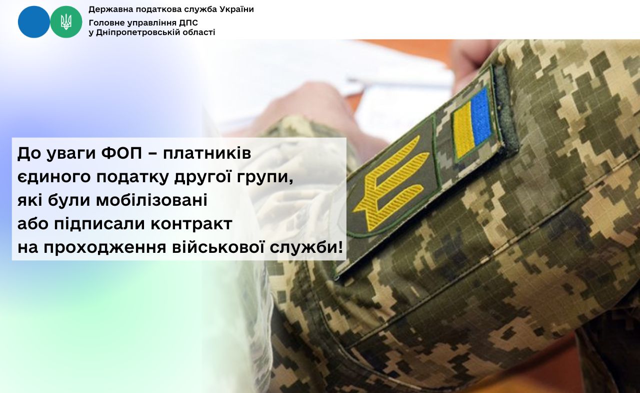 Згідно з абзацом восьмим п. 25 підрозд. 10 розд. XX «Перехідні положення» ПКУ на підставі відомостей про дату мобілізації, укладення контракту, демобілізації (звільнення з військової служби), отриманих центральним органом виконавчої влади, що реалізує державну податкову політику, з Єдиного державного реєстру призовників, військовозобов’язаних та резервістів, контролюючий орган не проводить нарахування авансових внесків з єдиного податку, передбачених п. 295.2 ст. 295 ПКУ, та авансових внесків з військового збору, передбачених п.п. 1.11 п. 16 прим. 1 підрозд. 10 розд. XX ПКУ, починаючи з місяця, в якому контролюючим органом отримані відомості про мобілізацію такої ФОП, укладений контракт, закінчуючи місяцем, в якому таку особу демобілізовано (звільнено з військової служби).