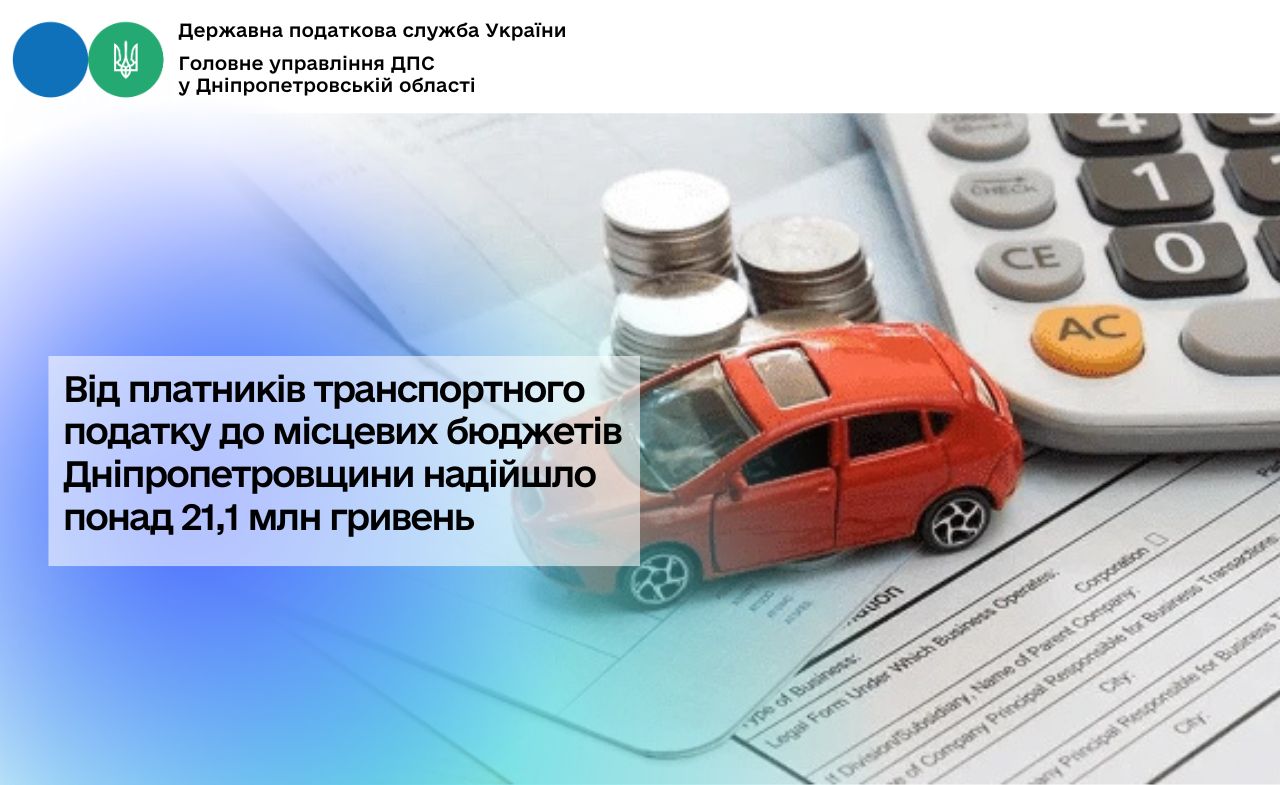 Від платників транспортного податку до місцевих бюджетів Дніпропетровщини надійшло понад 21,1 млн гривень
