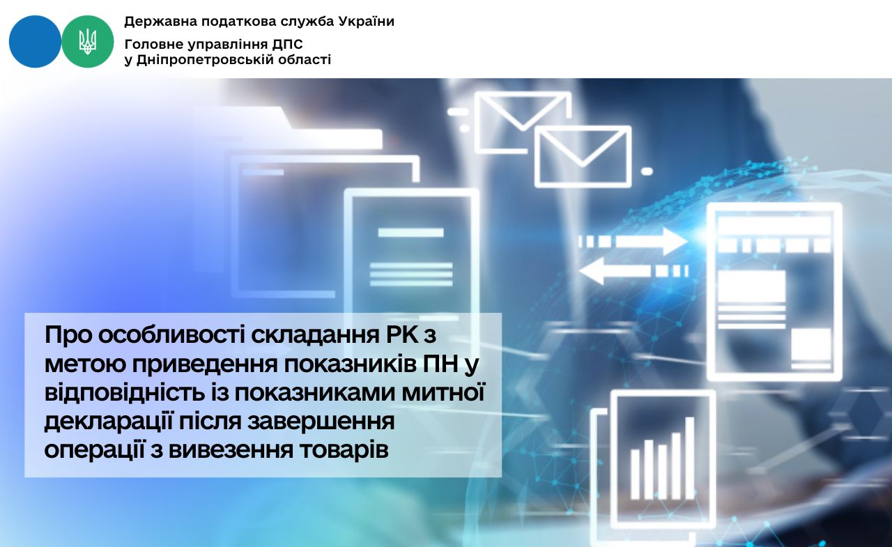 Про особливості складання РК з метою приведення показників ПН у відповідність із показниками митної декларації після завершення операції з вивезення товарів