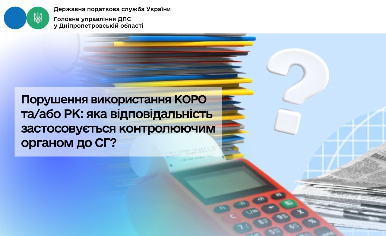 Пунктом 3 ст. 17 Закону № 265 передбачено, що якщо у випадках, визначених Законом № 265, при здійсненні розрахункових операцій суб’єкт господарювання не використовує, використовує незареєстровані належним чином, порушує встановлений порядок використання або не зберігає протягом встановленого строку КОРО та/або розрахункові книжки (РК), то до такого суб’єкта господарювання за рішенням відповідних контролюючих органів застосовується відповідальність у вигляді фінансової санкції у розмірі п’ятдесят неоподатковуваних мінімумів доходів громадян.