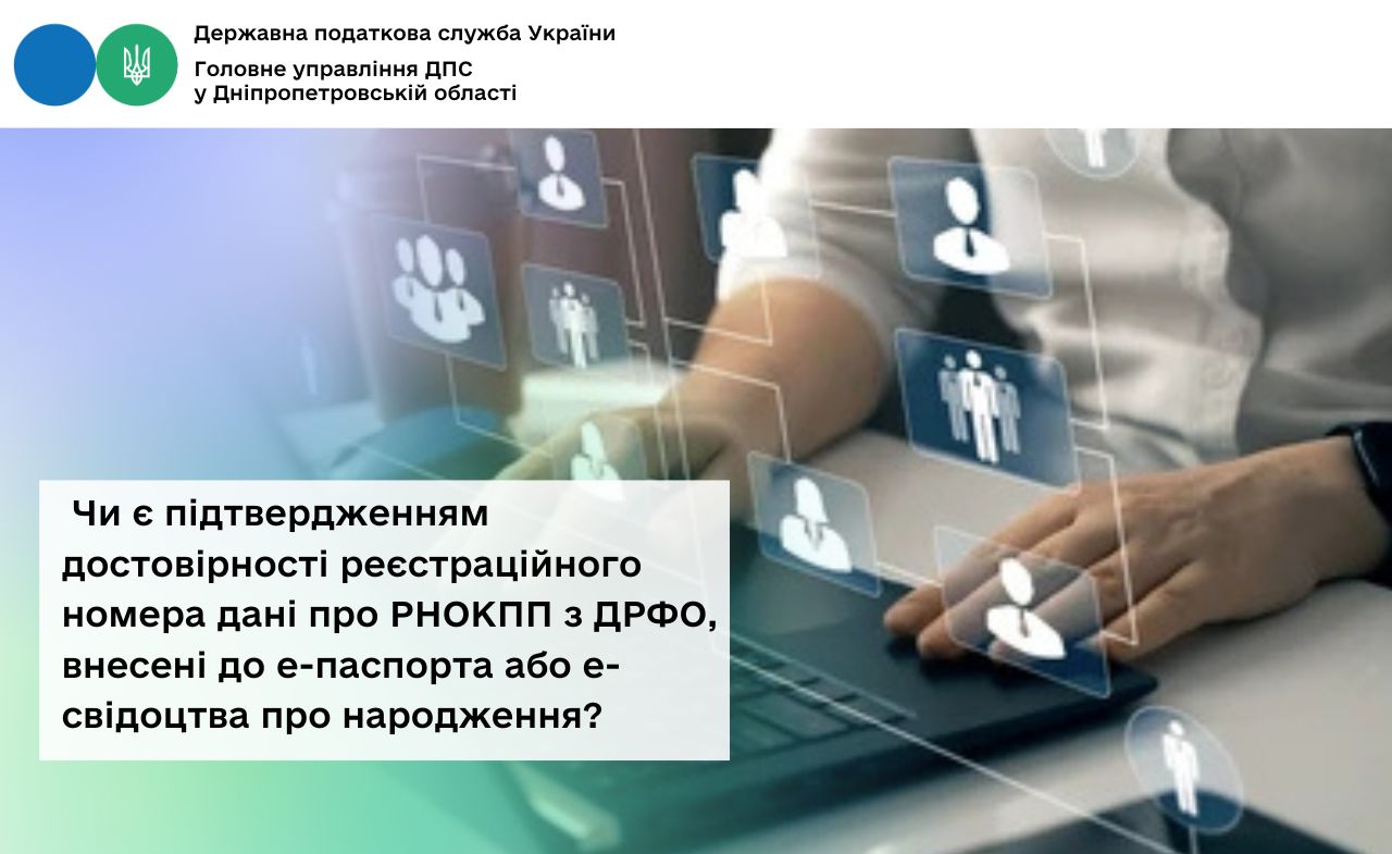 Згідно з п. 11 розд. IІІ Положення про реєстрацію фізичних осіб у Державному реєстрі фізичних осіб – платників податків, затвердженого наказом Міністерства фінансів України від 29.09.2017 № 822 (далі – Положення № 822) фізична особа – платник податків може подавати дані про реєстраційний номер облікової картки платника податків, зокрема як внесені до е-паспорта, е-паспорта для виїзду за кордон, е-свідоцтва про народження, так і окремо, як електронну копію документа, що засвідчує реєстрацію такої особи в ДРФО засобами Єдиного державного вебпорталу електронних послуг «Портал Дія» (далі – Портал Дія), у тому числі з використанням мобільного додатка Порталу Дія, за умови здійснення перевірки відповідності та підтвердження таких реєстраційних даних.