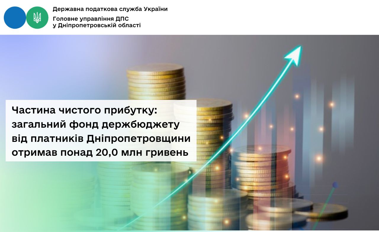 У січні – листопаді поточного року платники Дніпропетровщини спрямували понад 20,0 млн грн частини чистого прибутку.