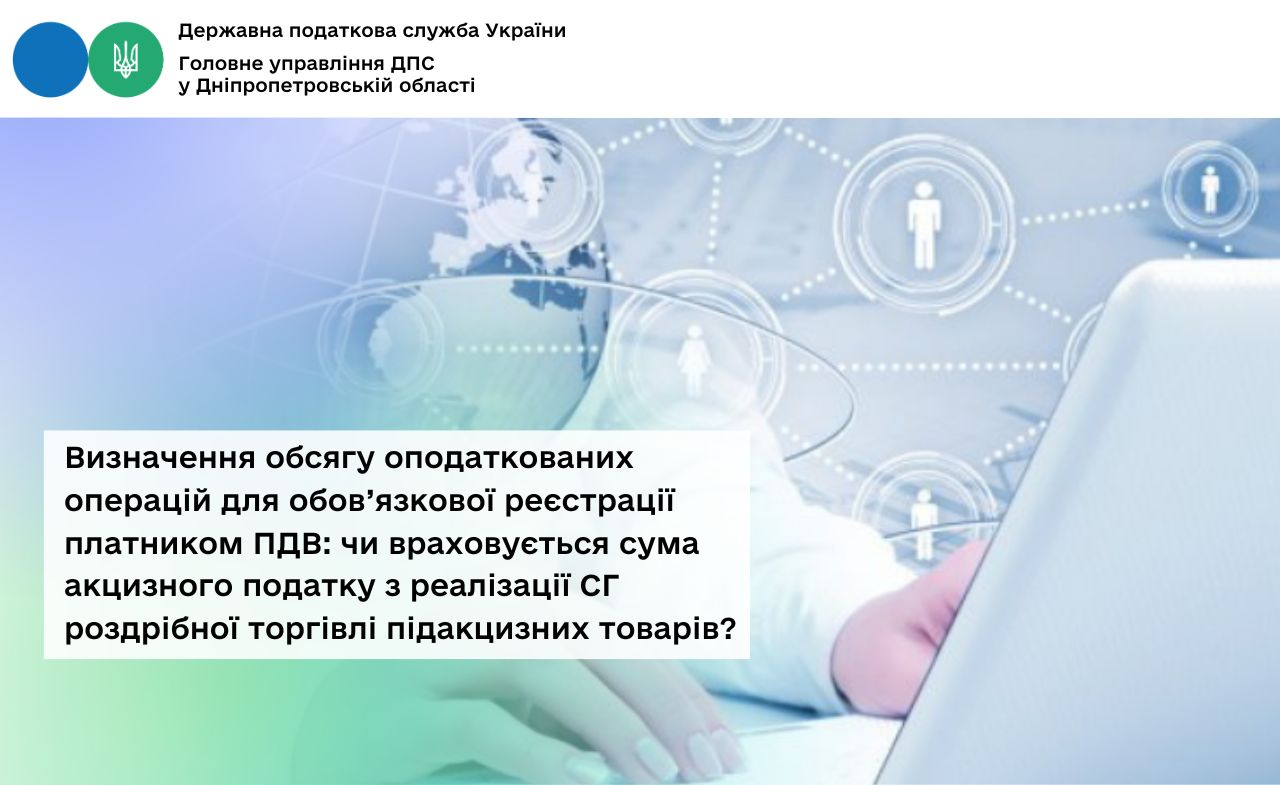 Головне управління ДПС у Дніпропетровській області нагадує, що відповідно до п. 181.1 ст. 181 Податкового кодексу України (далі – ПКУ) у разі якщо загальна сума від здійснення операцій з постачання товарів / послуг, що підлягають оподаткуванню згідно з цим розділом, у тому числі операцій з постачання товарів / послуг з використанням локальної або глобальної комп’ютерної мережі (зокрема, але не виключно шляхом встановлення спеціального застосунку або додатку на смартфонах, планшетах чи інших цифрових пристроях), нарахована (сплачена) такій особі протягом останніх 12 календарних місяців, сукупно перевищує 1000000 гривень (без урахування ПДВ), така особа зобов’язана зареєструватися як платник податку у контролюючому органі за своїм місцезнаходженням (місцем проживання) з дотриманням вимог, передбачених ст. 183 ПКУ, крім особи, яка є платником єдиного податку першої - третьої групи.