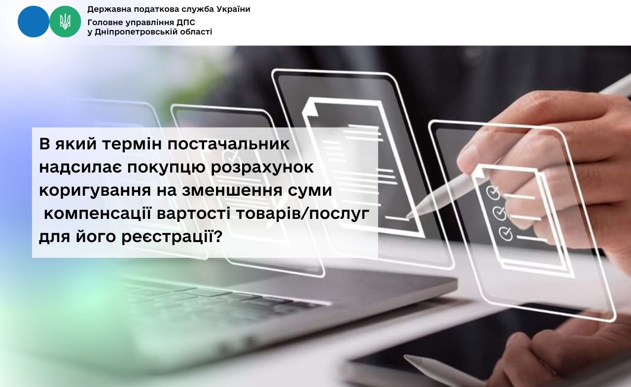 В який термін постачальник надсилає покупцю розрахунок коригування на зменшення суми компенсації вартості товарів/послуг для його реєстрації?