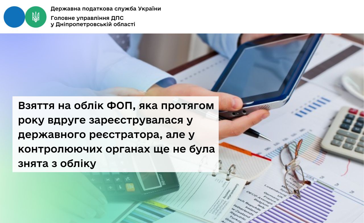 Взяття на облік ФОП, яка протягом року вдруге зареєструвалася у державного реєстратора, але у контролюючих органах ще не була знята з обліку