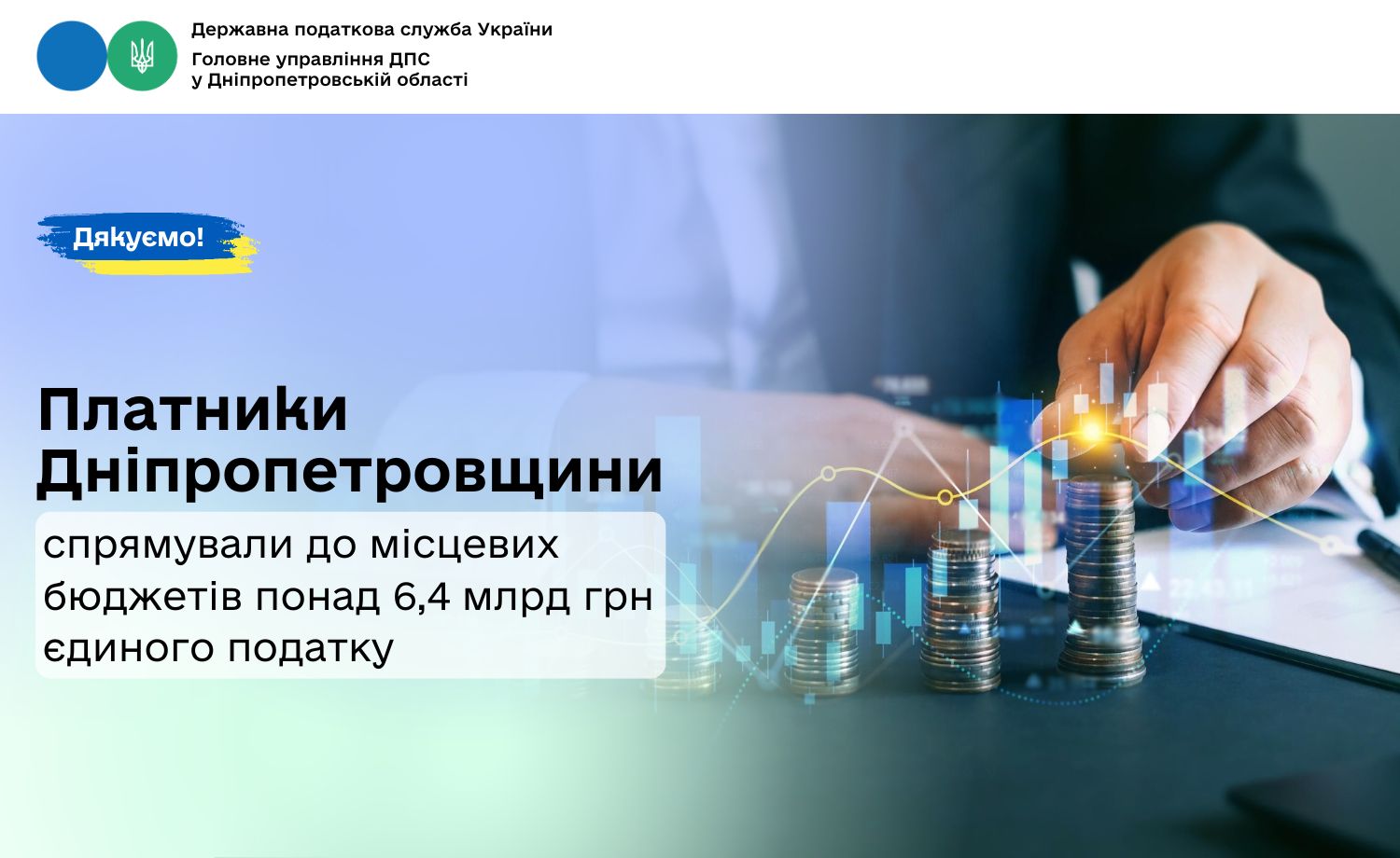 Платники Дніпропетровщини спрямували до місцевих бюджетів понад 6,4 млрд грн єдиного податку