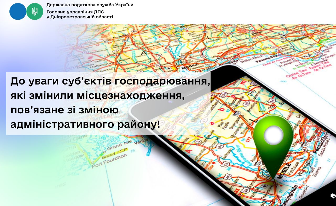 До уваги суб’єктів господарювання, які змінили місцезнаходження, пов’язане зі зміною адміністративного району!