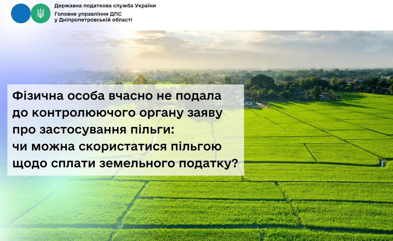 Також, якщо право на пільгу у фізичної особи, яка має у власності декілька земельних ділянок одного виду використання, виникає протягом календарного року та/або фізична особа, визначена у п. 281.1 ст. 281 ПКУ, набуває право власності на земельну ділянку / земельні ділянки одного виду використання, така особа подає заяву про застосування пільги до контролюючого органу за місцем знаходження будь-якої земельної ділянки протягом 30 календарних днів з дня набуття такого права на пільгу та/або права власності (абзац перший п. 281.5 ст. 281 ПКУ).