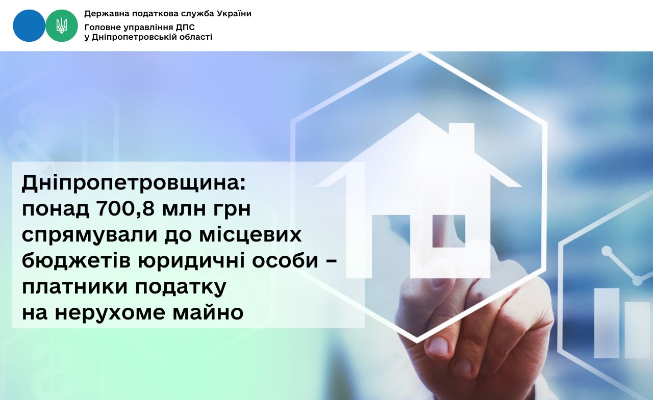 Упродовж одинадцяти місяців 2025 року юридичні особи поповнили місцеві бюджети Дніпропетровщини податком на нерухоме майно, відмінне від земельної ділянки (податок), на понад 700,8 млн гривень. Це майже на 84,0 млн грн більше, темп росту – 113,6 відсотків.
