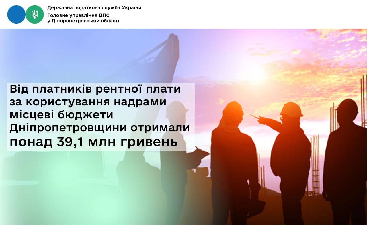 Від платників рентної плати за користування надрами місцеві бюджети Дніпропетровщини отримали понад 39,1 млн гривень