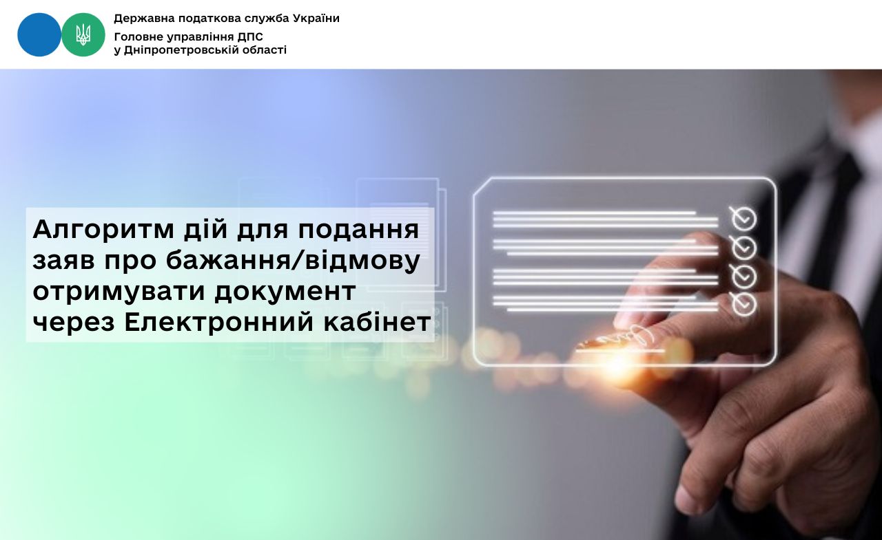 Для подання Заяви про бажання отримувати документ через Електронний кабінет або Заяви про відмову отримувати документ через Електронний кабінет необхідно: