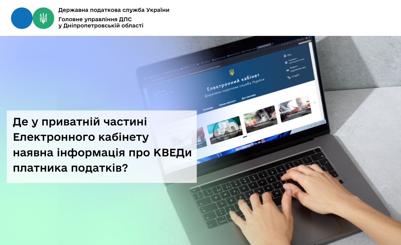 Режим «Облікові дані платника» приватної частини Електронного кабінету містить інформацію про облікові та реєстраційні дані платника, у тому числі, щодо кодів видів економічної діяльності (КВЕД) платника.