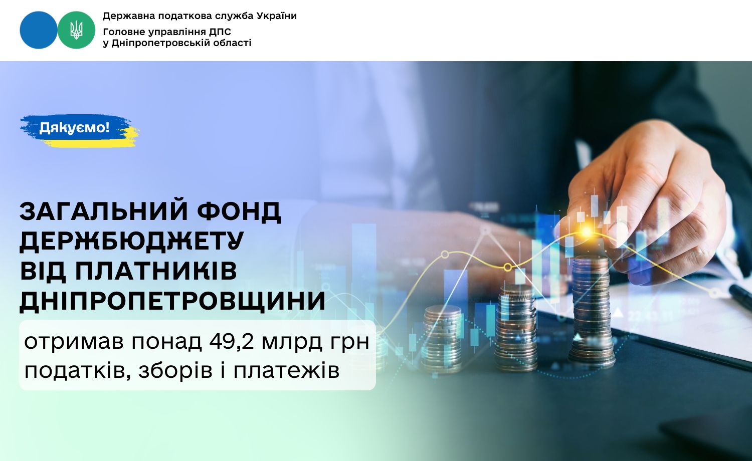 Протягом січня – листопада 2025 року від платників Дніпропетровщини до загального фонду державного бюджету надійшло понад 49,2 млрд грн податкових платежів. У порівнянні з січнем – листопадом минулого року надходження зросли майже на 11,2 млрд грн, або на 29,4 відсотки.