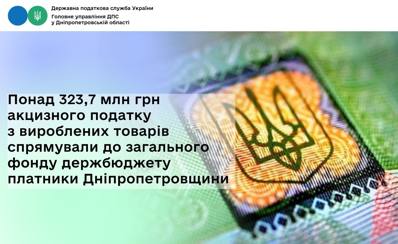У січні – грудні 2025 року платники Дніпропетровської області поповнили загальний фонд держаного бюджету акцизним податком з вироблених товарів на понад 323,7 млн гривень.