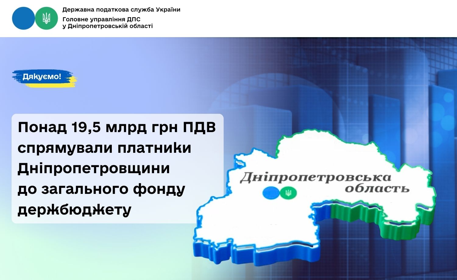 У січні – грудні 2025 року загальний фонд державного бюджету від платників Дніпропетровщини отримав понад 19,5 млрд грн податку на додану вартість (ПДВ), що майже на 3,2 млрд грн більше показника січня – грудня 2024 року. Про це поінформував в. о. начальника Головного управління ДПС у Дніпропетровській області Юрій Павлютін.
