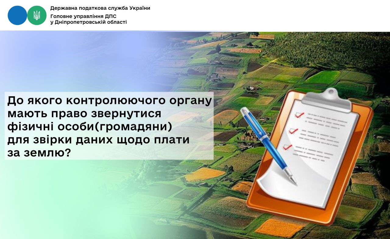Головне управління ДПС у Дніпропетровській області нагадує що відповідно до п.п. 14.1.147 п. 14.1 ст. 14 Податкового кодексу (далі – ПКУ) плата за землю – обов’язковий платіж у складі податку на майно, що справляється у формі земельного податку або орендної плати за земельні ділянки державної і комунальної власності.