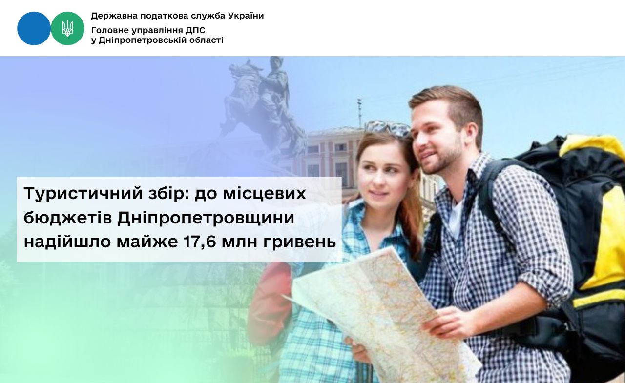Протягом січня – грудня 2025 року до місцевих бюджетів Дніпропетровської області від платників туристичного збору надійшло майже 17,6 млн гривень, що більше показника січня – грудня 2024 року на понад 1,6 млн гривень.