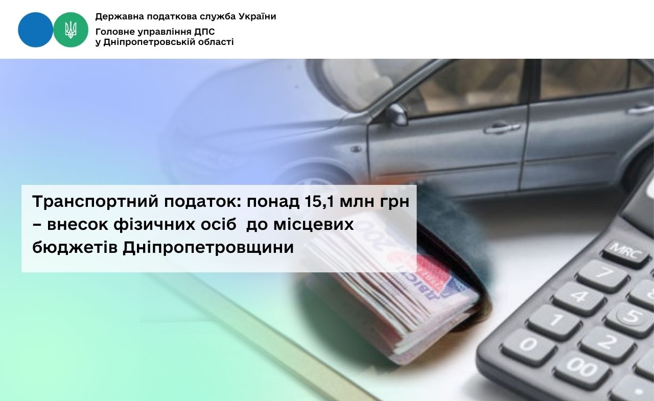 Упродовж січня – грудня 2025 року від фізичних осіб до місцевих бюджетів Дніпропетровської області надійшло понад 15,1 млн грн транспортного податку. Це порівняно з аналогічним періодом 2024 року більше на понад 1,0 млн гривень.