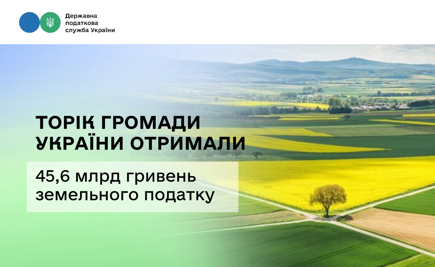 У 2025 році понад 3 млн платників сплатили 45,6 млрд грн земельного податку. Це на 15,6 % більше порівняно з 2024 роком (39,4 млрд грн).