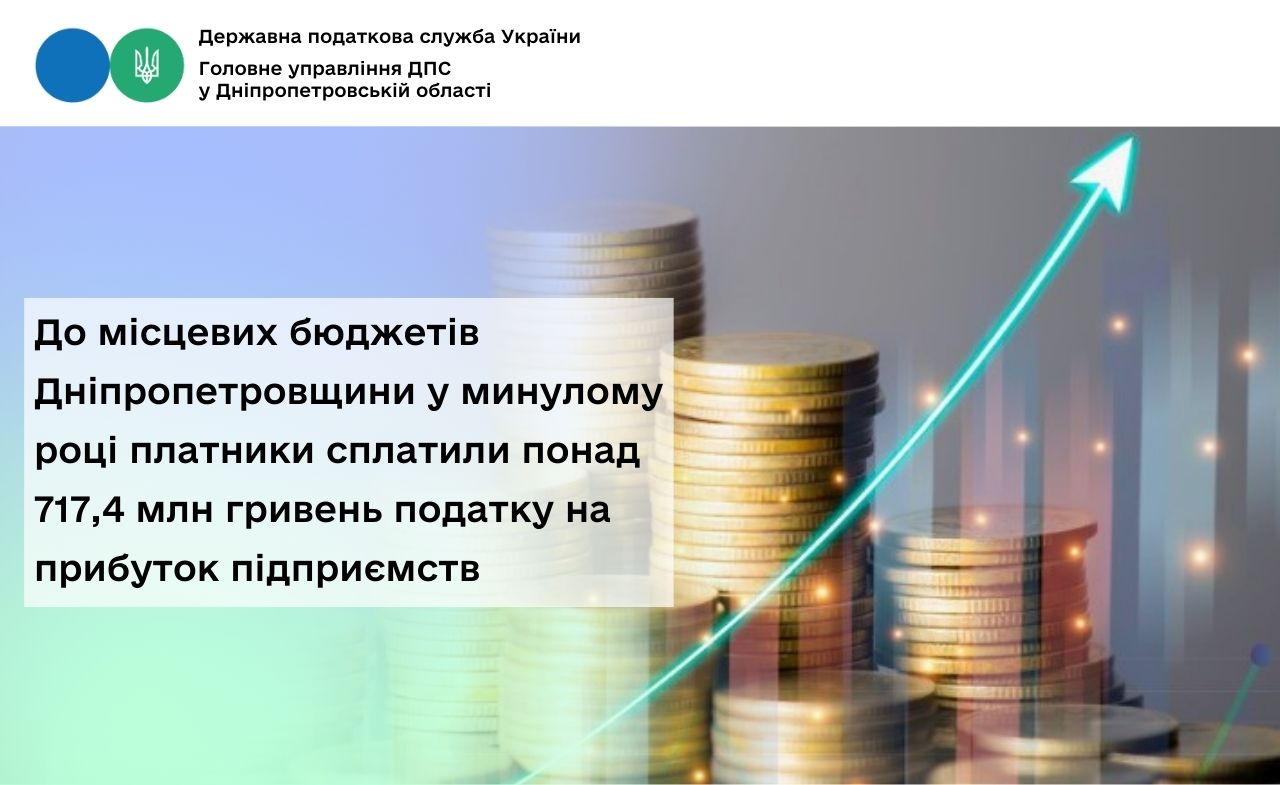 Упродовж 2025 року платники податку на прибуток підприємств спрямували до місцевих бюджетів Дніпропетровщини понад 717,4 млн гривень. У порівнянні з показником січня – грудня 2024 року надходження збільшились на понад 80,8 млн гривень.