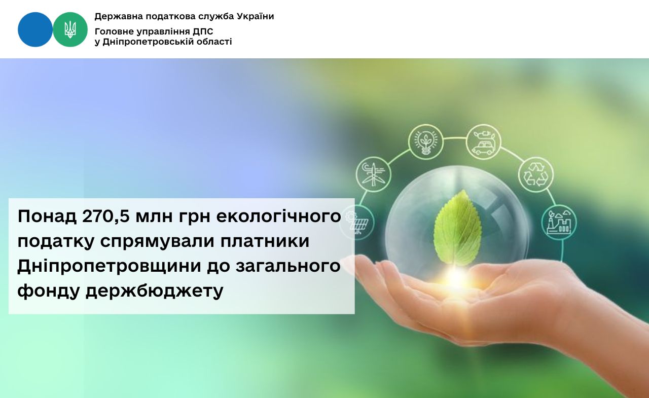 Понад 270,5 млн грн екологічного податку спрямували платники Дніпропетровщини до загального фонду держбюджету