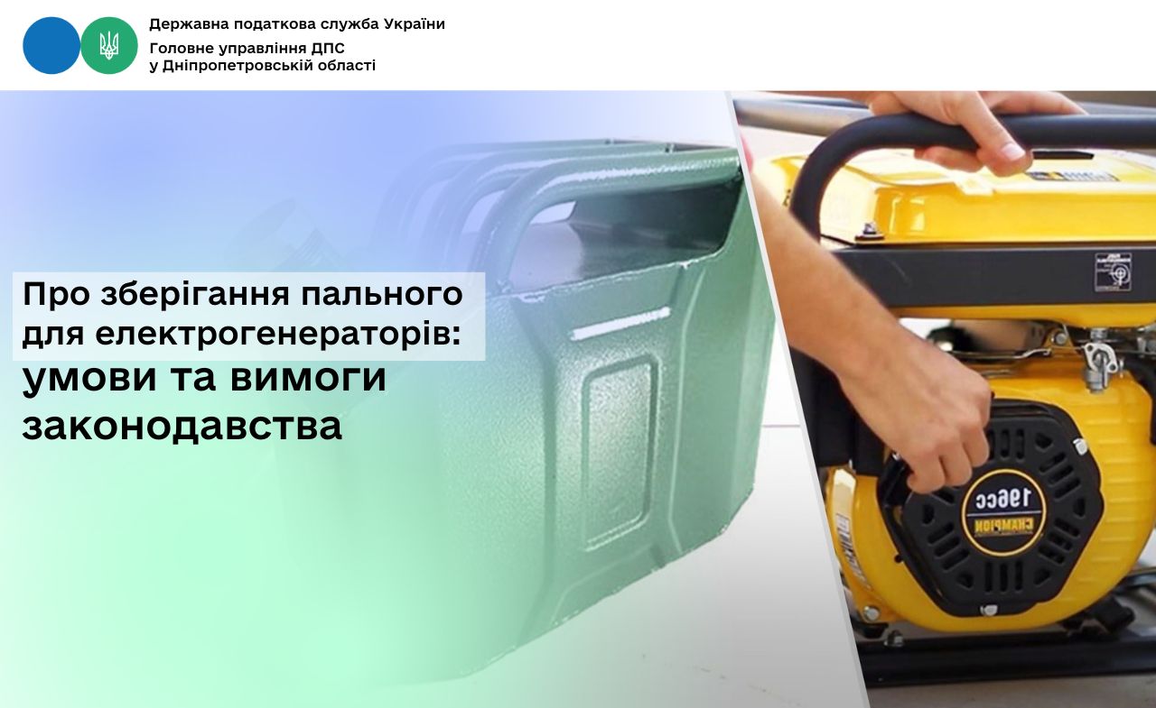 Головне управління ДПС у Дніпропетровській області (ГУ ДПС) інформує суб’єктів господарювання (СГ) про особливості зберігання пального, яке використовується для заправлення електрогенераторних установок, у період дії воєнного стану.