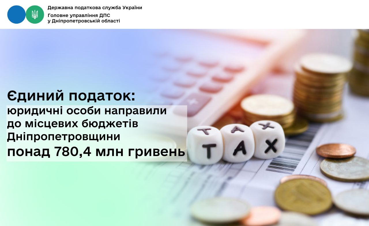 Протягом січня – грудня 2025 року юридичні особи направили до місцевих бюджетів Дніпропетровщини понад 780,4 млн грн єдиного податку, що майже на 72,6 млн грн більше, порівнюючи з 2024 роком.