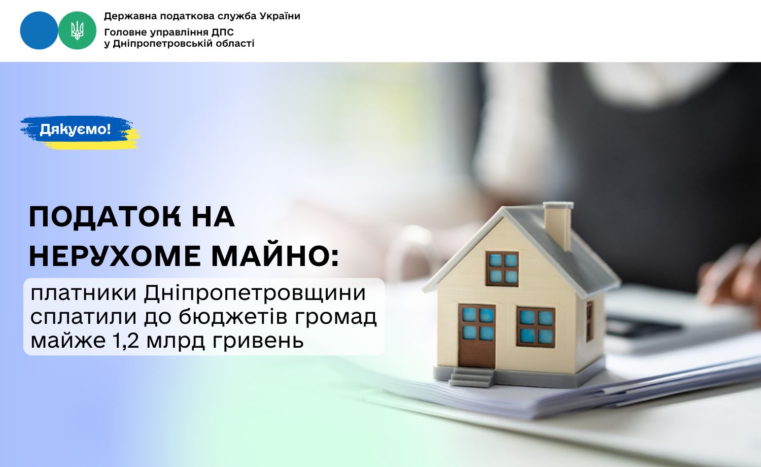 Податок на нерухоме майно: платники Дніпропетровщини сплатили до бюджетів громад майже 1,2 млрд гривень