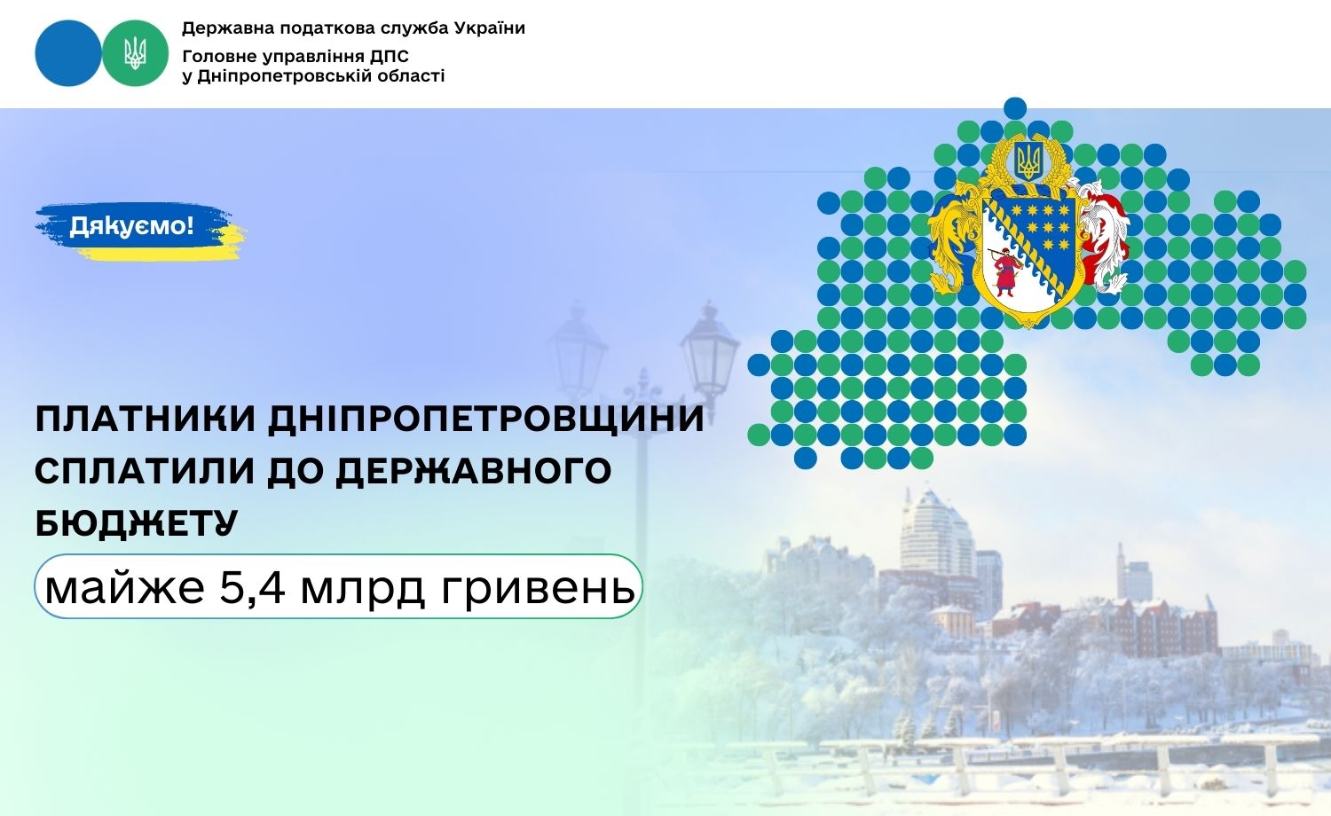 Платники Дніпропетровщини сплатили до державного бюджету майже 5,4 млрд гривень