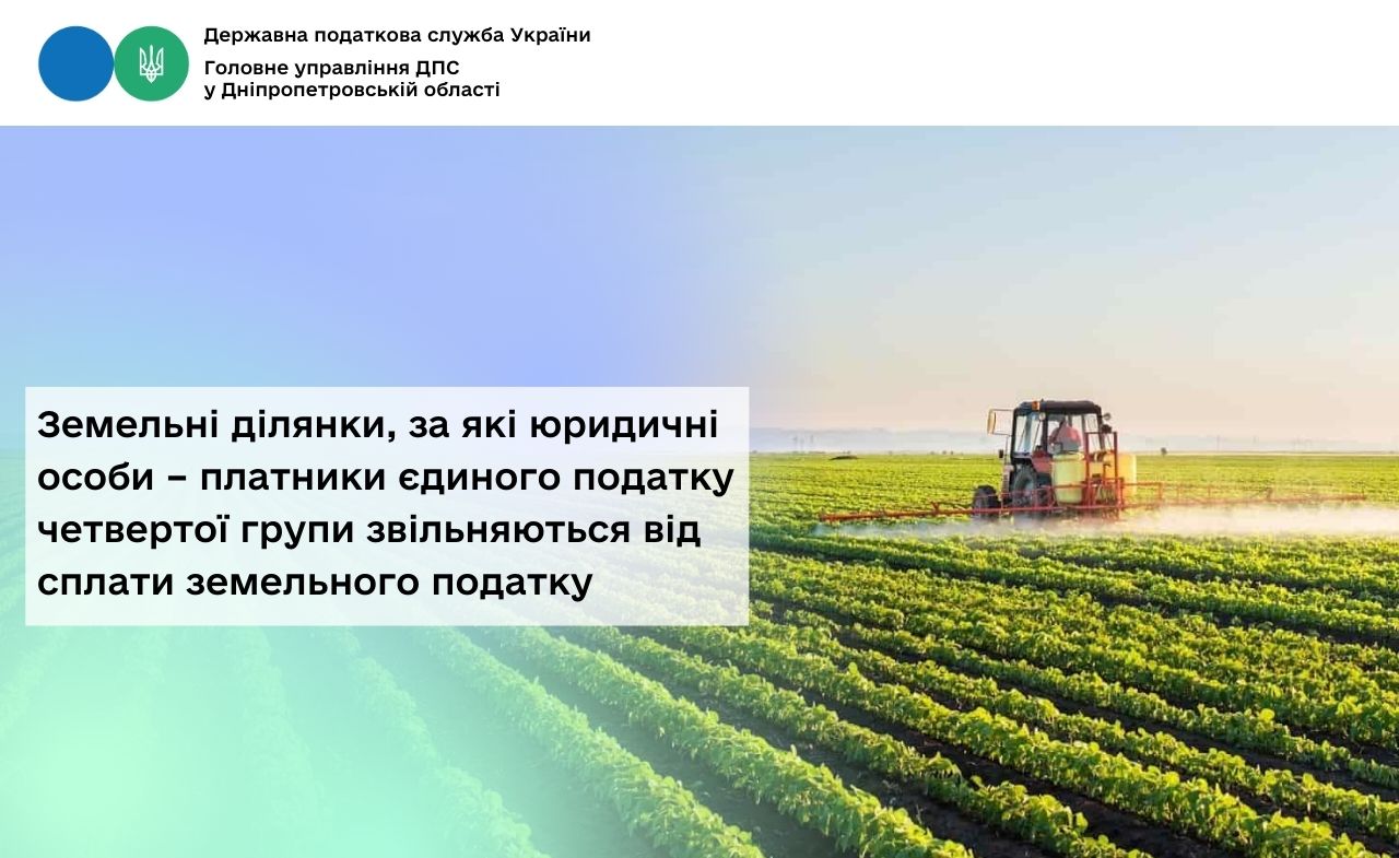 Отже, юридичні особи – платники єдиного податку четвертої групи, які є власниками / користувачами земель сільськогосподарського призначення та/або земель водного фонду (внутрішніх водойм, озер, ставків, водосховищ), звільняються від сплати земельного податку за земельні ділянки, що використовуються такими платниками для ведення сільськогосподарського товаровиробництва.
