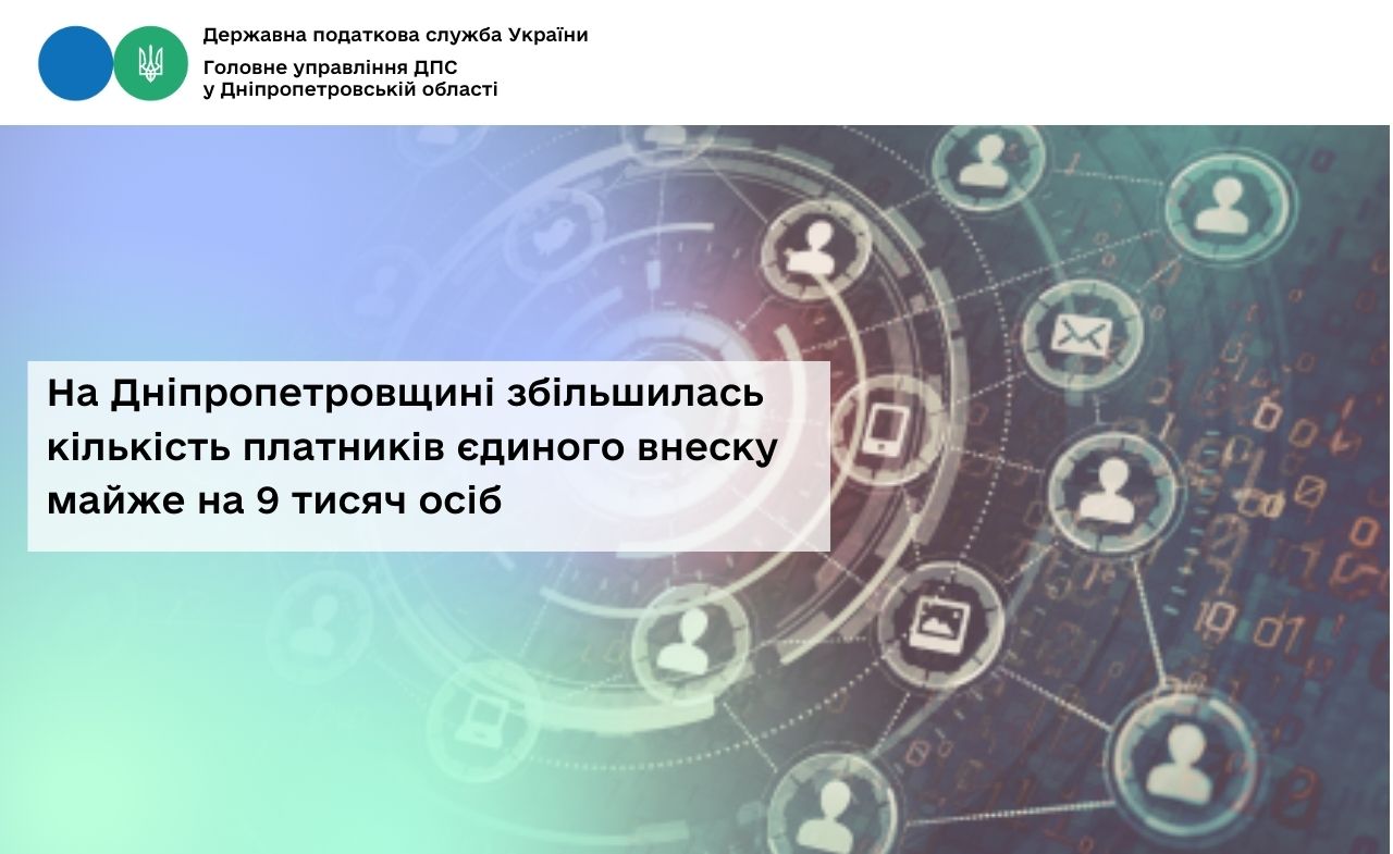 Станом на 01.02.2026 в Головному управлінні ДПС у Дніпропетровській області обліку знаходилось 290 448 юридичних осіб і фізичних осіб – підприємців, які є платниками єдиного внеску на загальнообов’язкове державне соціальне страхування (єдиний внесок). Кількість платників збільшилась на 8 902 особи у порівнянні з 2025 роком (станом на 01.02.2025 – 281 546 осіб).