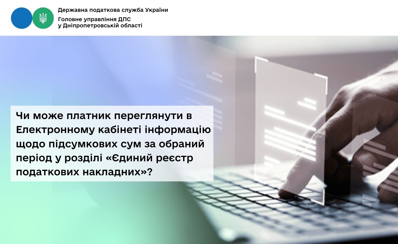 Чи може платник переглянути в Електронному кабінеті інформацію щодо підсумкових сум за обраний період у розділі «Єдиний реєстр податкових накладних»?