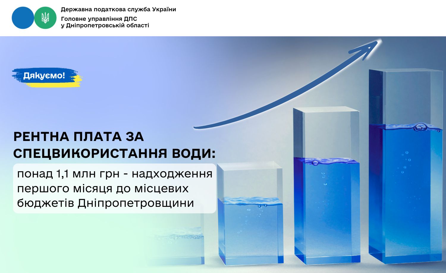 Протягом січня 2026 року від платників рентної плати за спеціальне використання води місцеві бюджети Дніпропетровщини отримали 1 157,6 тис. гривень. Надходження у порівнянні з січневим показником минулого року зросли на 228,6 тис. грн, або на 24,6 відсотків.