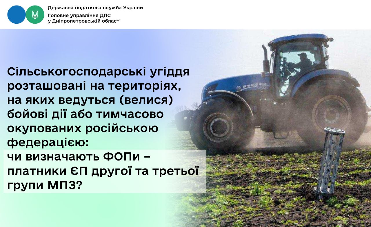 Сільськогосподарські угіддя розташовані на територіях, на яких ведуться (велися) бойові дії або тимчасово окупованих російською федерацією: чи визначають ФОПи – платники ЄП другої та третьої групи МПЗ?