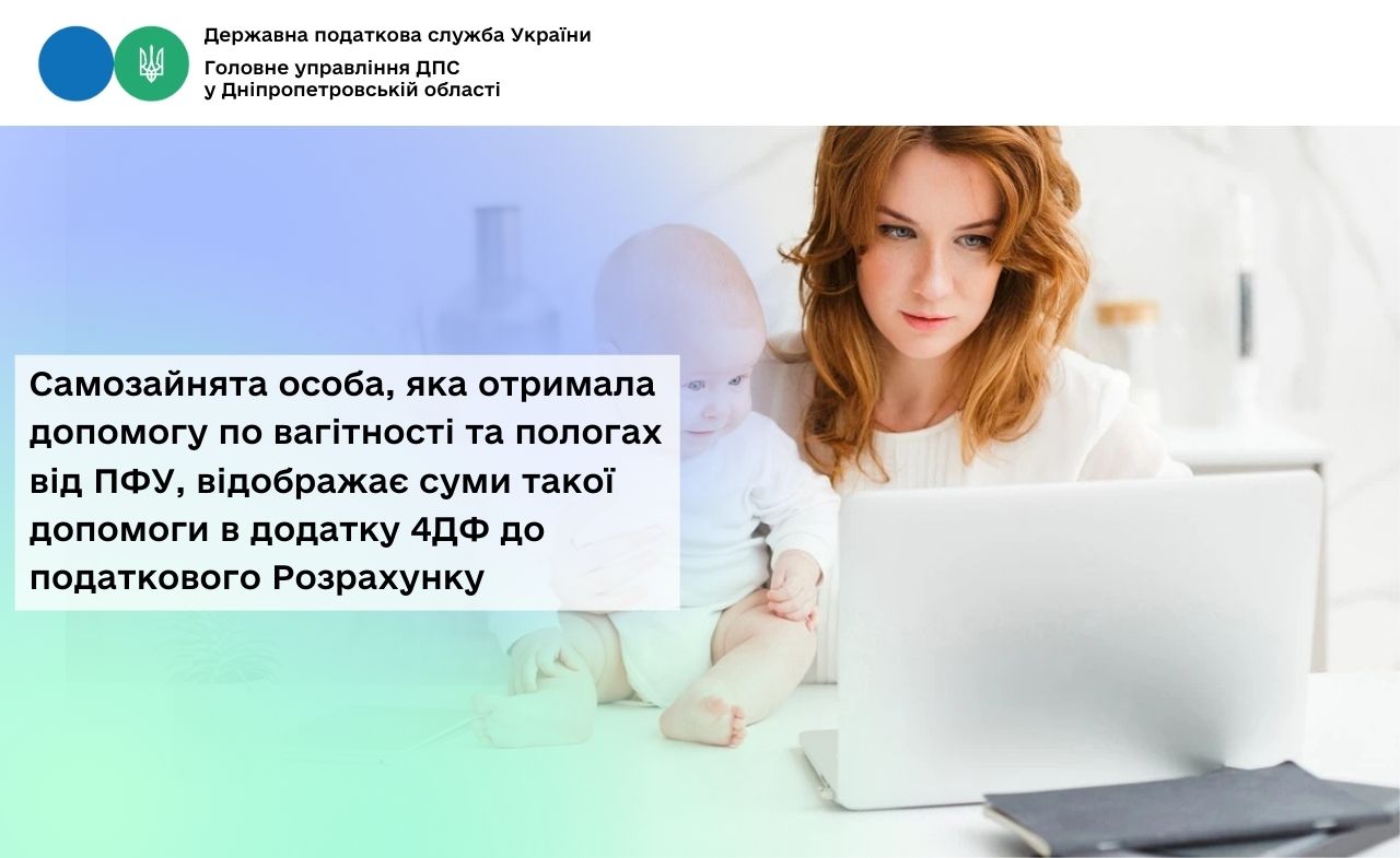 Таким чином, у самозайнятої особи, як податкового агента, виникає обов’язок щодо відображення в додатку 4ДФ до Розрахунку доходу у вигляді допомоги по вагітності та пологах, отриманої від Пенсійного фонду, в т. ч. при відсутності найманих працівників та інших нарахувань (виплат) фізичним особам.