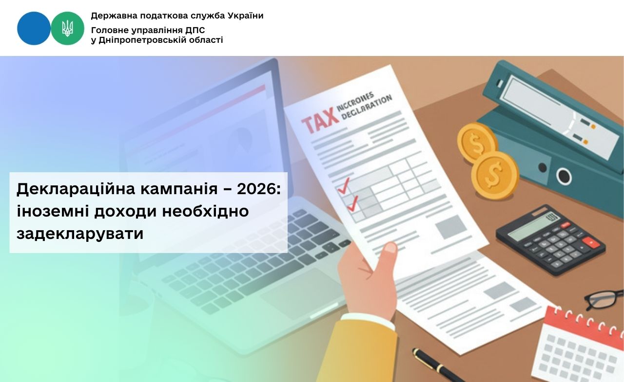 Головне управління ДПС у Дніпропетровській області нагадує, що триває Деклараційна кампанія – 2026.