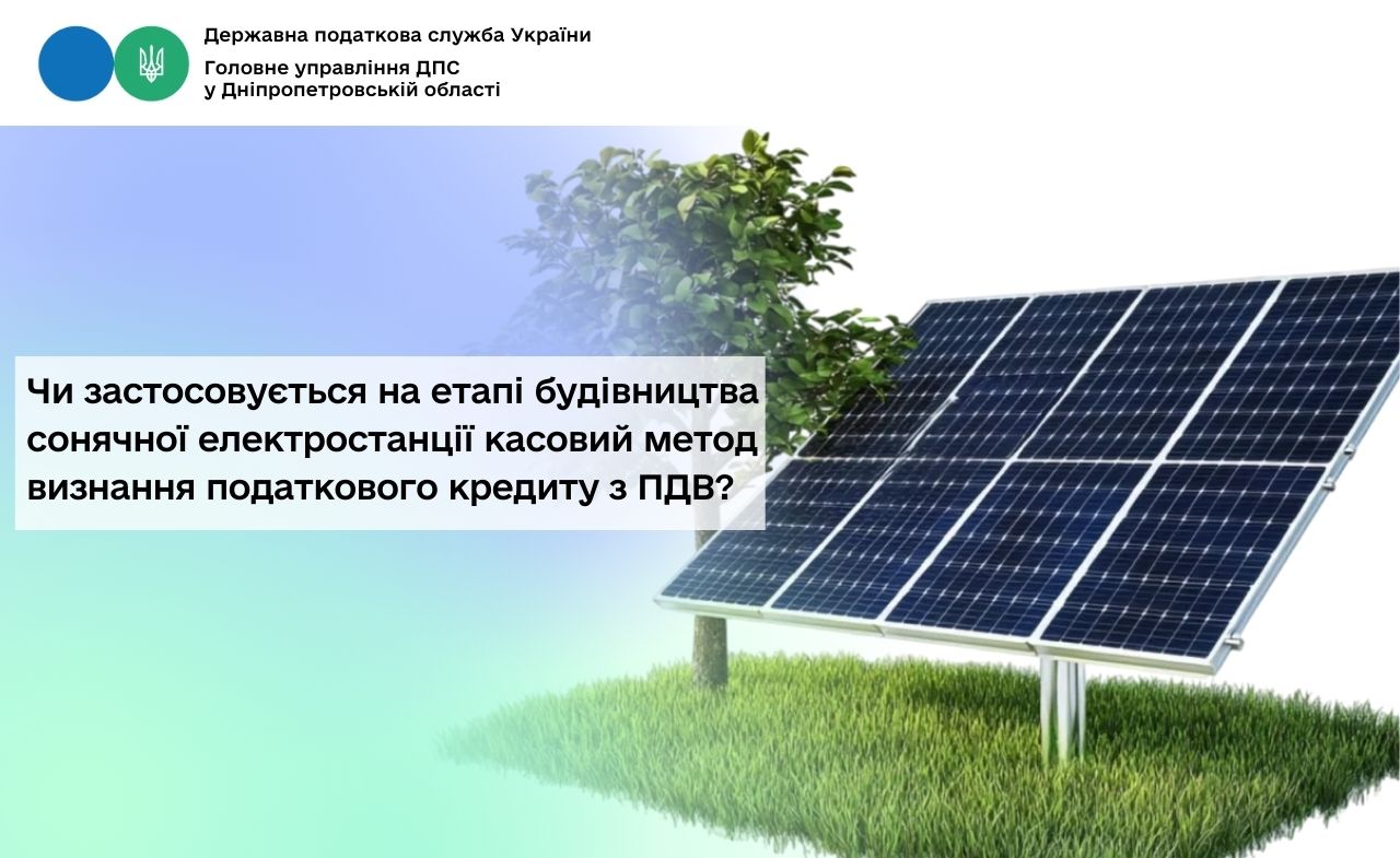 Якщо сонячна електростанція, яка будується на замовлення платника податку, буде використовуватися для виробництва та постачання електроенергії в майбутньому (тобто на час придбання послуг з її спорудження постачання товарів/послуг, перелічених у п. 44 підрозд. 2 розд. XX ПКУ, ще не здійснюється), то у такому випадку податковий кредит за операціями з отримання послуг зі спорудження такої електростанції формується отримувачем таких послуг за загальними правилами на дату «першої події» (касовий метод не застосовується).