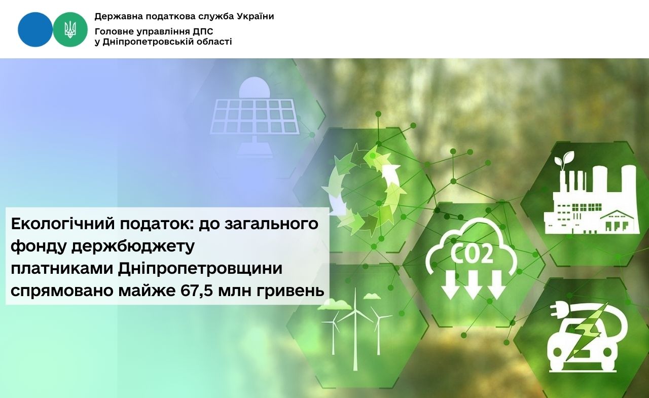 У січні – лютому 2026 року від платників Дніпропетровщини до загального фонду державного бюджету надійшло майже 67,5 млн грн екологічного податку.