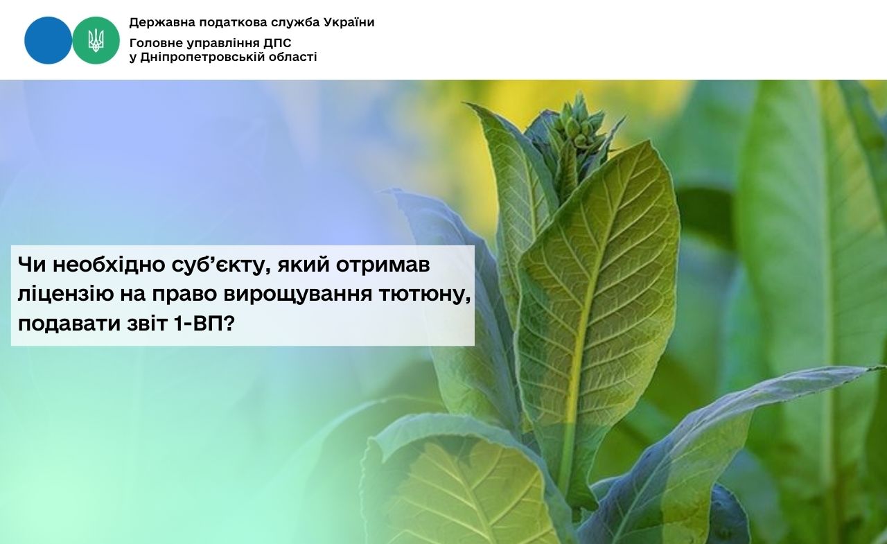 Головне управління ДПС у Дніпропетровській області нагадує, що Порядок подання та заповнення форми звітності № 1-ВП (місячна, річна) «Звіт про залишки та обсяги виробництва та/або обігу (в тому числі ввезення на митну територію України, вивезення за межі митної території України) спирту етилового, спиртових дистилятів, біоетанолу, алкогольних напоїв, тютюнових виробів, рідин, що використовуються в електронних сигаретах, про залишки та обсяги придбання і використання тютюнової сировини, про обсяг (вагу) придбаної неферментованої тютюнової сировини, обсяг (вагу) виробленої ферментованої тютюнової сировини, обсяг (вагу) реалізованої ферментованої тютюнової сировини, обсяг (вагу) залишків неферментованої та ферментованої тютюнової сировини на кінець звітного періоду, про залишки та обсяг вирощування тютюну і реалізації тютюнової сировини, посівну площу» (далі – Звіт № 1-ВП) та форми звітності № 1-ОП (місячна) «Звіт про залишки та обсяги обігу (в тому числі ввезення на митну територію України, вивезення за межі митної території України) спирту етилового, спиртових дистилятів, біоетанолу, алкогольних напоїв, тютюнових виробів, тютюнової сировини (у тому числі ферментованої тютюнової сировини), рідин, що використовуються в електронних сигаретах» (далі – Порядок) затверджено наказом Міністерства фінансів України від 22.12.2025 № 641.