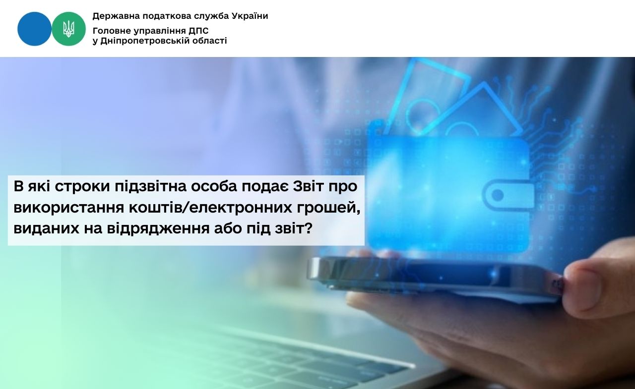 Головне управління ДПС у Дніпропетровській області нагадує, що відповідно до п.п. 170.9.3 п. 170.9 ст. 170 Податкового кодексу України (далі – ПКУ) документальне підтвердження суми фактичних витрат на відрядження або виконання окремих цивільно-правових дій шляхом надання підтвердних документів, що засвідчують суму таких витрат, у разі здійснення безготівкових розрахунків з використанням платіжних інструментів, включаючи корпоративні (бізнесові) платіжні інструменти або особисті платіжні інструменти, чи їх реквізити, та повернення особі, яка видала кошти/електронні гроші під звіт, суми надміру витрачених коштів/електронних грошей, розмір яких розрахований згідно з п.п. 170.9.1 п. 170.9 ст. 170 ПКУ, здійснюється платником податку до закінчення місяця, наступного за місяцем, у якому платник податку: