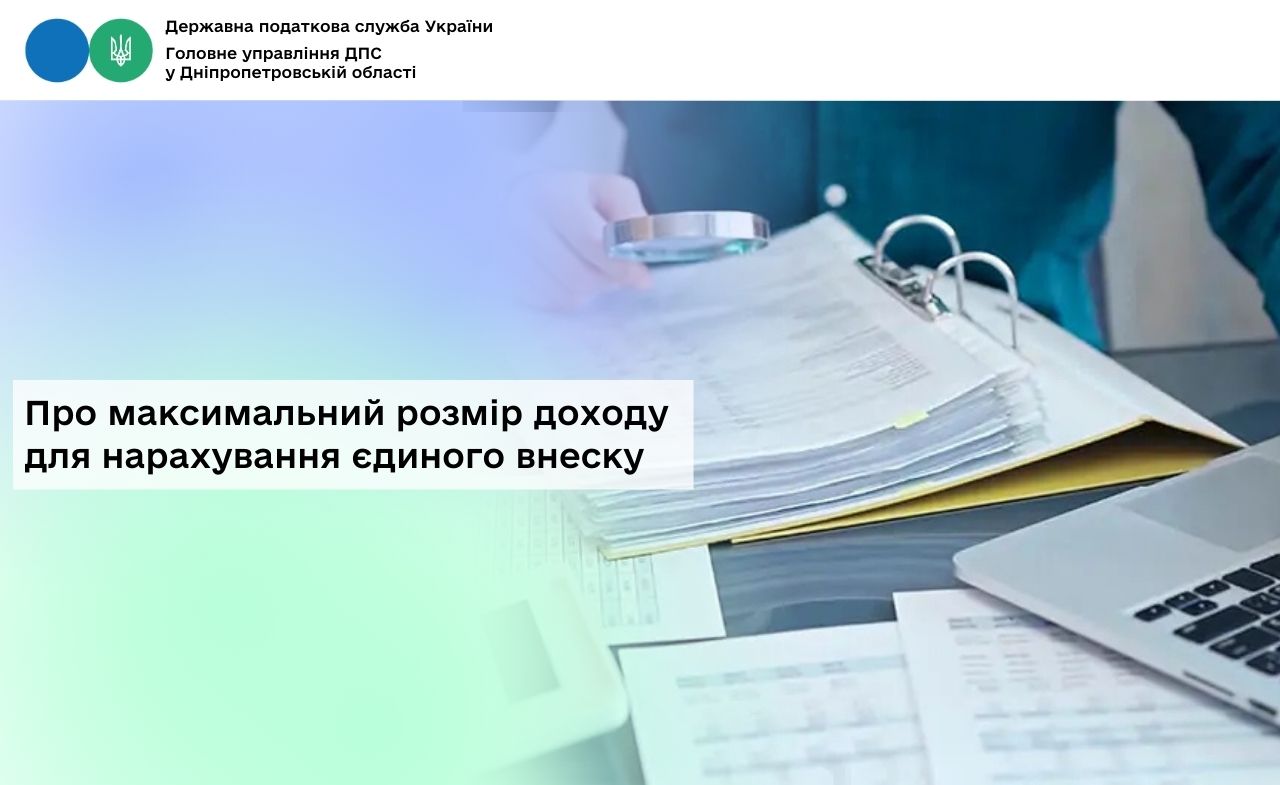 Головне управління ДПС у Дніпропетровській області нагадує, що у 2025 році максимальний розмір доходу для нарахування єдиного внеску на загальнообов’язкове державне соціальне страхування (єдиний внесок):